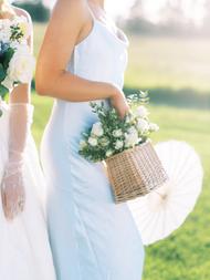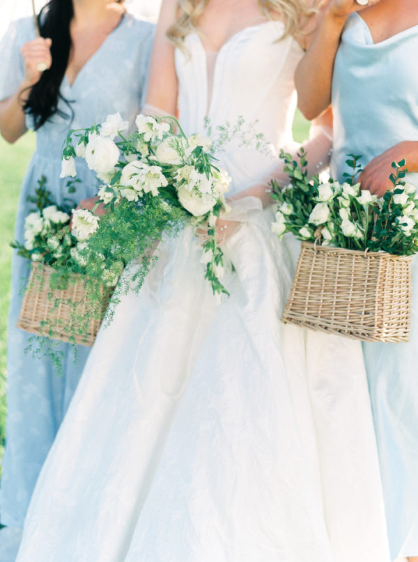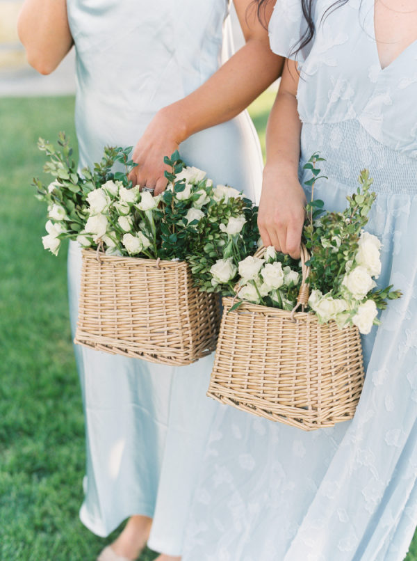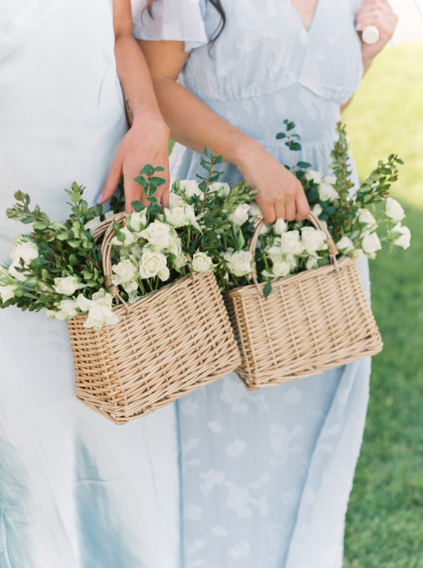[field title=”Tips To Pull Off The Look”]Bridesmaids pulled off the sweetest nontraditional look carrying floral baskets, instead of bouquets. This modern element nodded to the countryside aspect while including the garden lush florals.[/field]