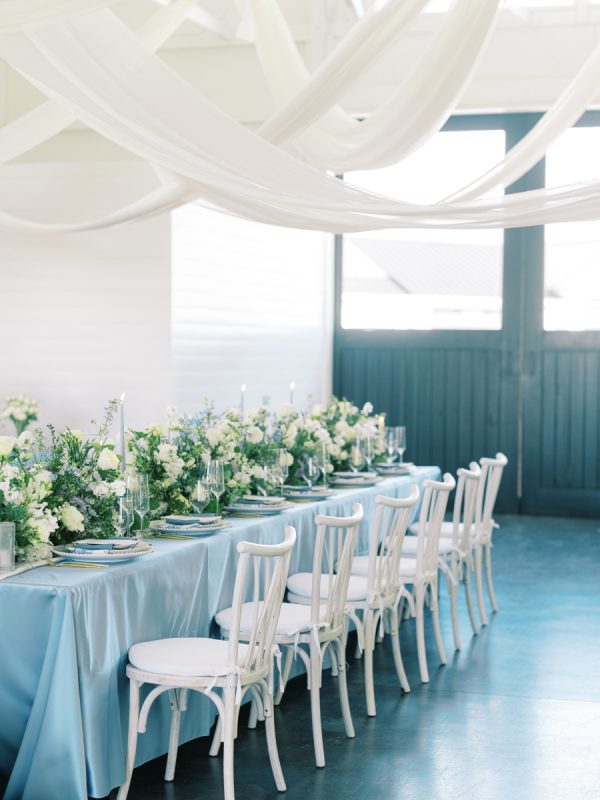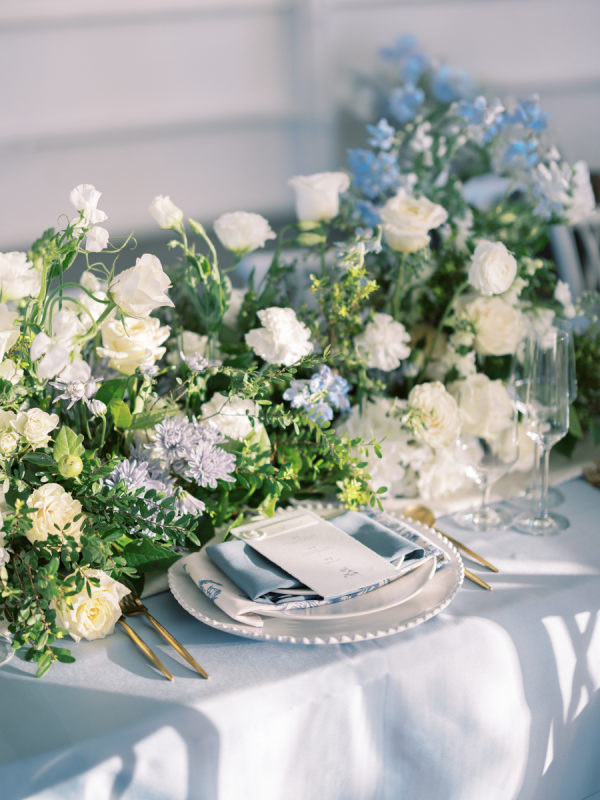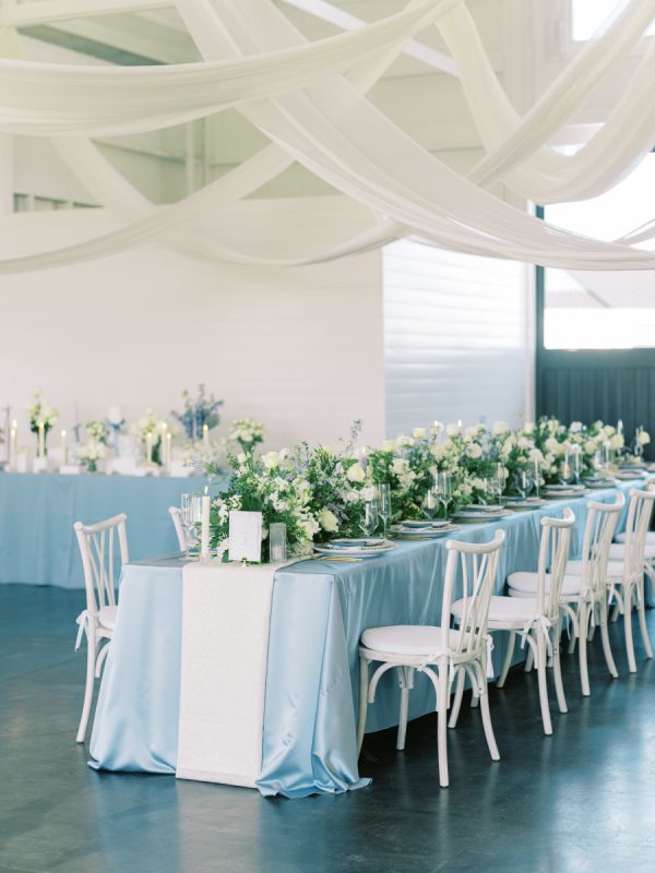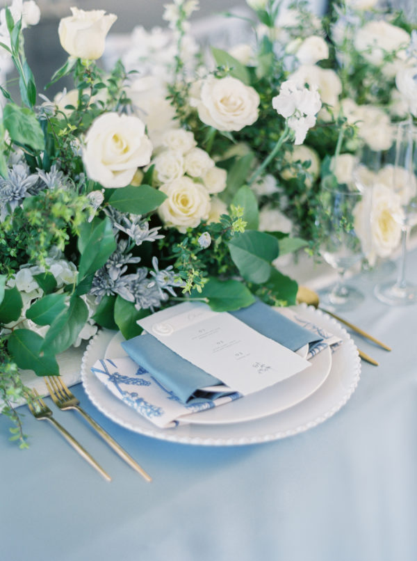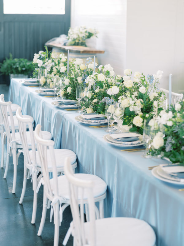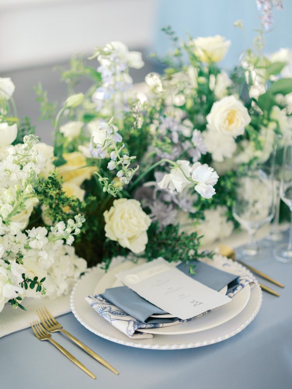Florals from Adelaide Co Floral were lush, romantic, and whimsical– soft and full of texture. Using neutral colors full of creams, whites, and sage, pops of blue added the perfect modern, elegant touch. Bouquets were garden-inspired, and tablescapes were refined and fresh.