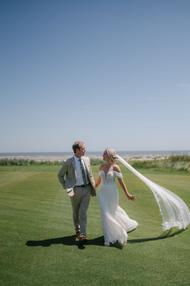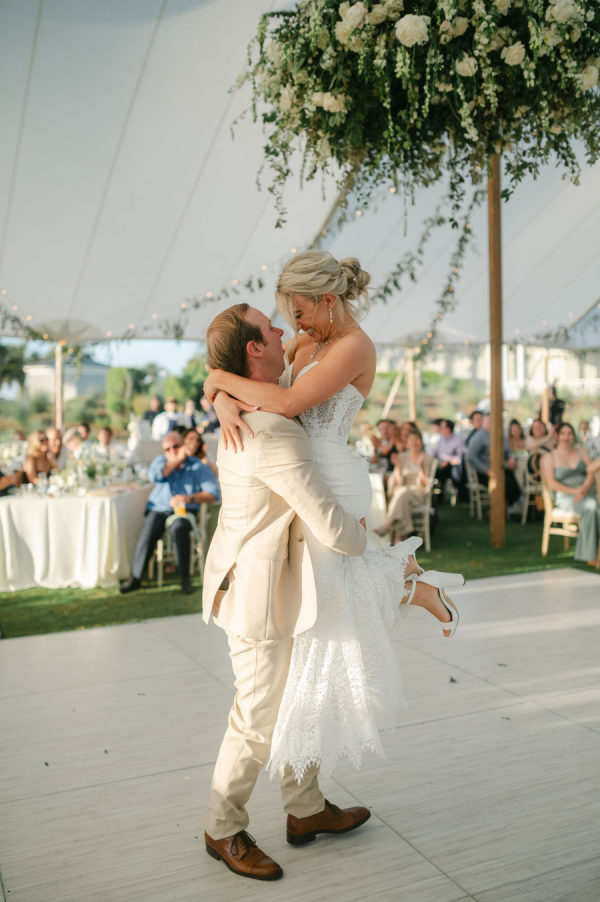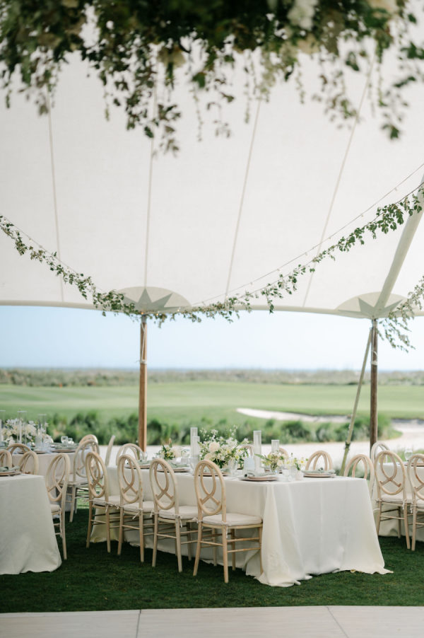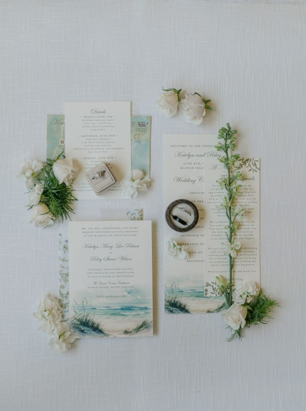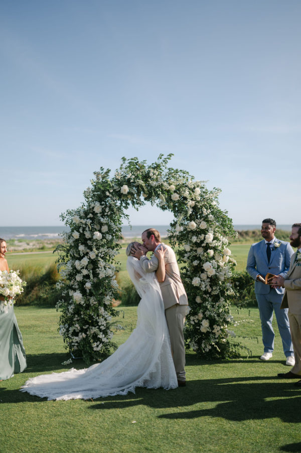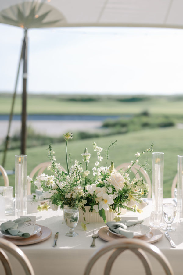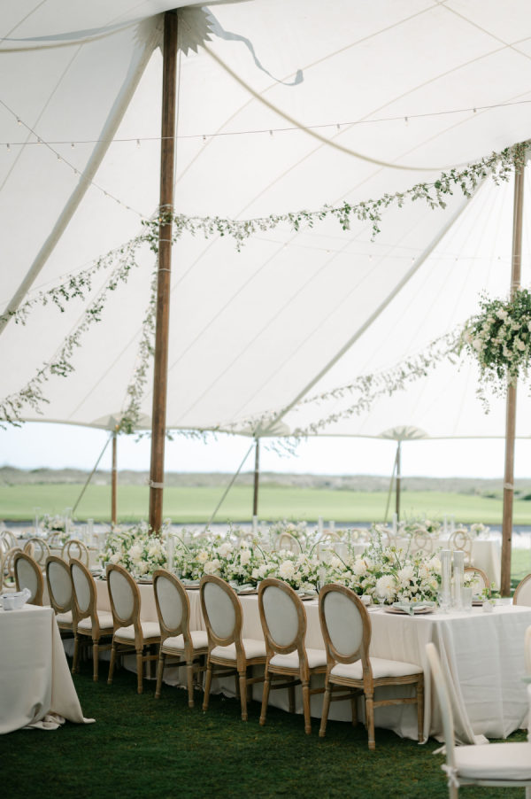 Riley and Katie chose a timeless design for their oceanside wedding. They dined and danced under a sailcloth tent full of lush white florals with pops of green. With their love of golf and the beach, saying “I do” at The Ocean Course could not have been a better choice for this amazing couple!