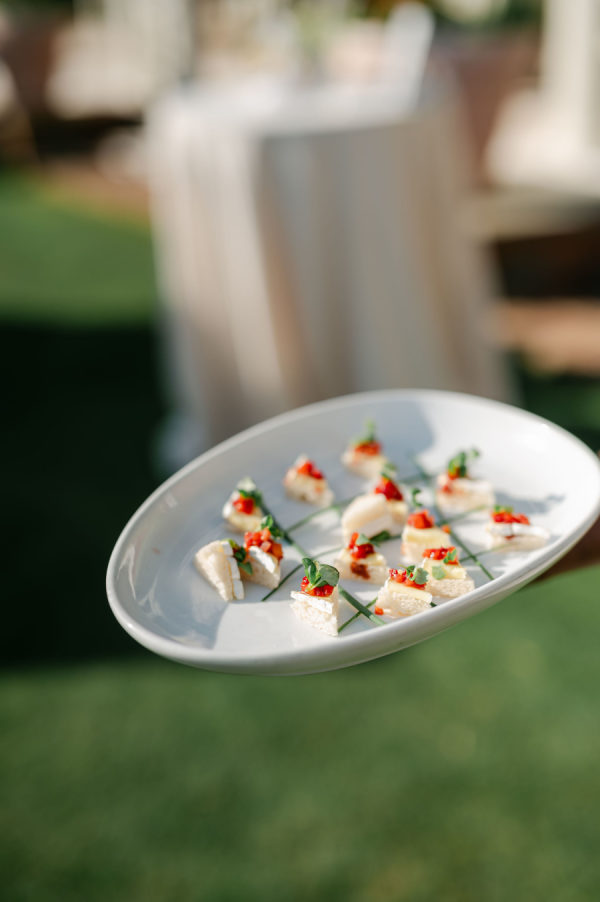 Riley and Katie decided variety was the way to go! They opted for stations that served dishes from all around the world. First up were Asian poke plates with rice and seared tuna. Second, a Mediterranean bar complete with olive tapenade, hummus, and pita. Third was a traditional braised short rib served over mashed potatoes. And lastly, Chicken and Waffles to represent the sSouth Their drink options included signature cocktails. Katies, a Spicy Margarita, and Riley’s, an Irish Whiskey Mule. And don’t forget the fur babies’ choice of a Vodka Lemonade.