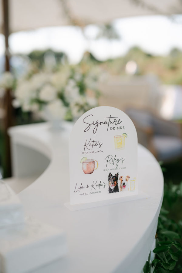 Even though Katie and Riley’s pups, Lila and Kona, couldn’t be there to celebrate in person, they still made an appearance by recommending one of the signature cocktails, Vodka Lemonade.