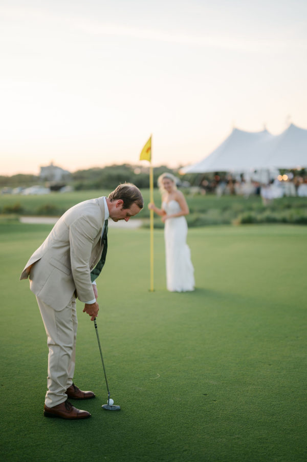 With Riley’s love of golf, he couldn’t let the opportunity pass without getting some couples portraits on the putting green! As we approached, a golfer offered Riley his putter and ball. Riley sank the putt with Katie by his side!